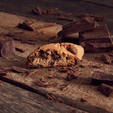 Die Cantuccini al cioccolato von Sapori lassen sich von der traditionellen toskanischen Rezeptur inspirieren, interpretieren diese Rezeptur aber neu, was die Cantuccini noch köstlicher macht. Schmackhafte Stücke aus Zartbitterschokolade vereinen sich mit frischer Milch, frischen Eiern von Hühnern in Bodenhaltung und Honig und kreieren so einen exquisiten Kontrast zwischen der Knusprigkeit des Kekses und der Köstlichkeit der Schokolade